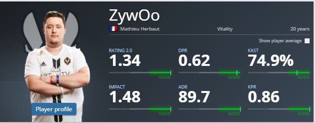 A Statisztikái alapján mint tavalyi év-ben ismét tarol a francia sztárjátékos névszerint Mathieu "ZywOO" Herbaut.
